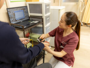 当院では、治療に入る前に必ず問診票を記入して頂き、患者様の身体の状態を丁寧に確認して行きます。問診・触診のカウンセリングに合わせて、専門の測定器(NSV)を使って自律神経の乱れを測定します。測定結果を患者様にご説明させて頂き、それに合わせた治療プランを提供していきます。