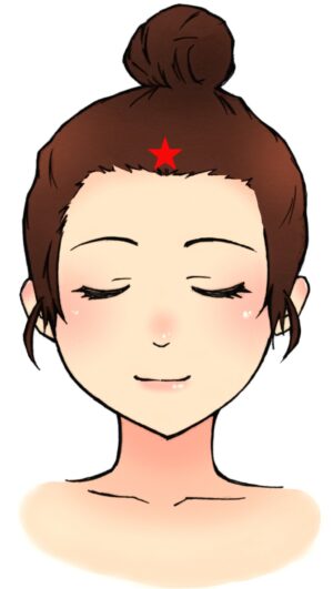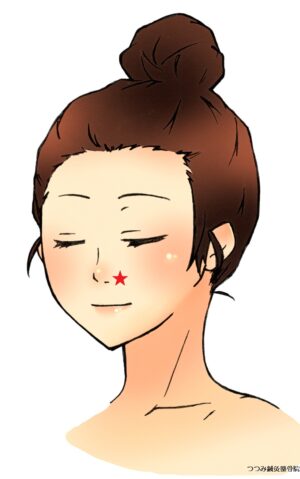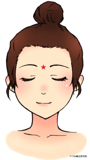 探し方:眉間の中央から真上に指を滑らせ、額の生え際を越えた位置